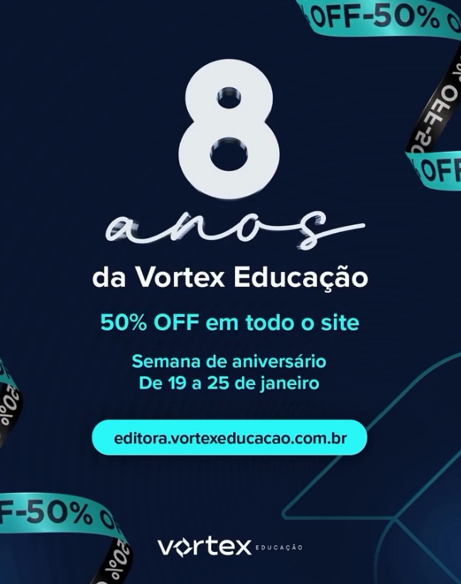 Em constante expansão para levar a todo Brasil uma metodologia educacional inovadora, a Vortex Educação está completando 8 anos de resultados que realmente movem a educação. E para celebrar a data, a Vortex realiza de 19 a 25 de janeiro a Semana de Aniversário, com 50% de desconto em todo o site.
